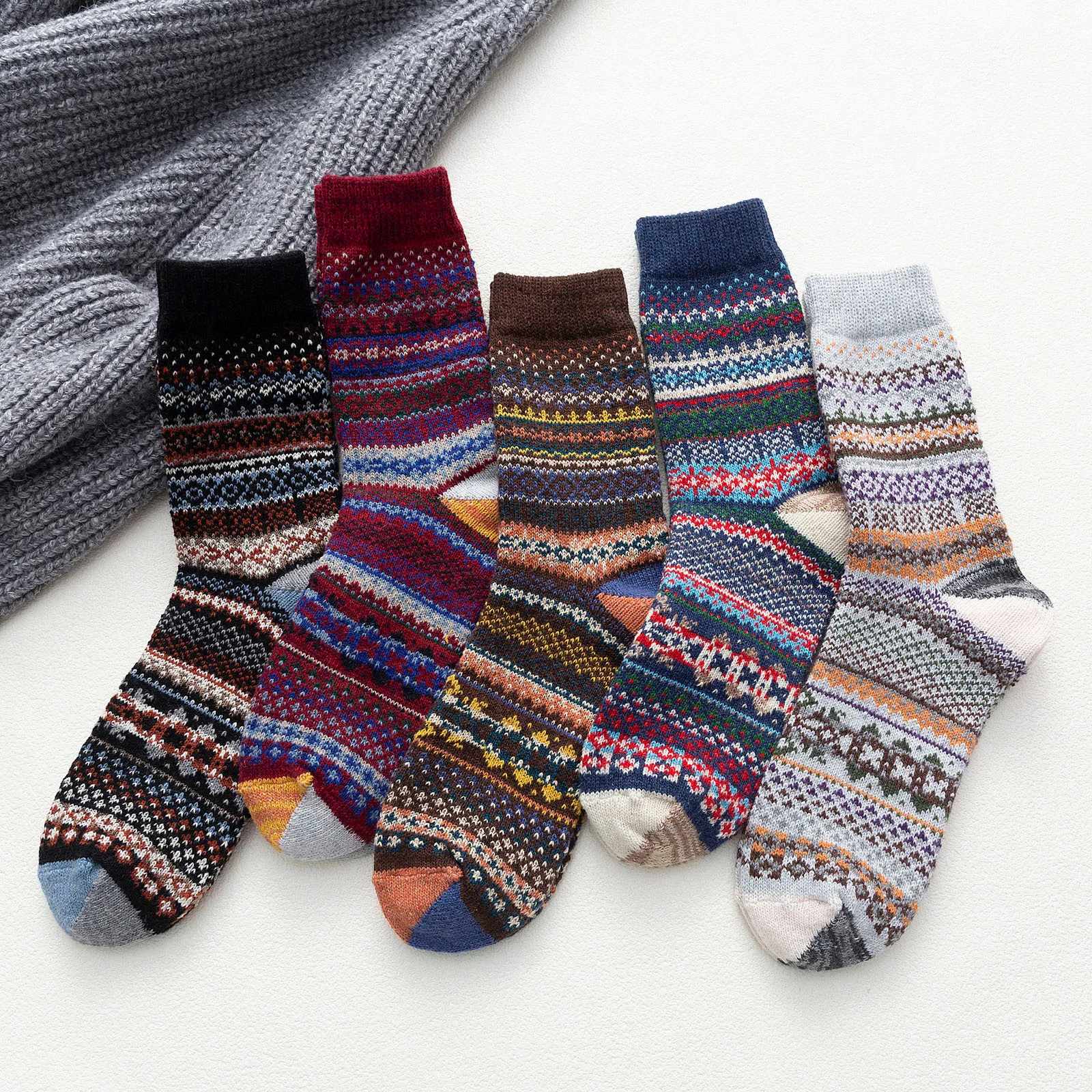 5pair Hot Sale Vintage Warm Winter Women S Geometry Print Socks Thick Cold Knit Woolen Cashmere Socks Noski Zhenskie T1g Socks Aliexpress